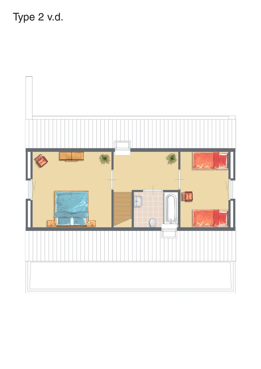- Zwei Schlafzimmer. Ein Schlafzimmer mit Doppelbett und ein Schlafzimmer mit zwei Einzelbetten.