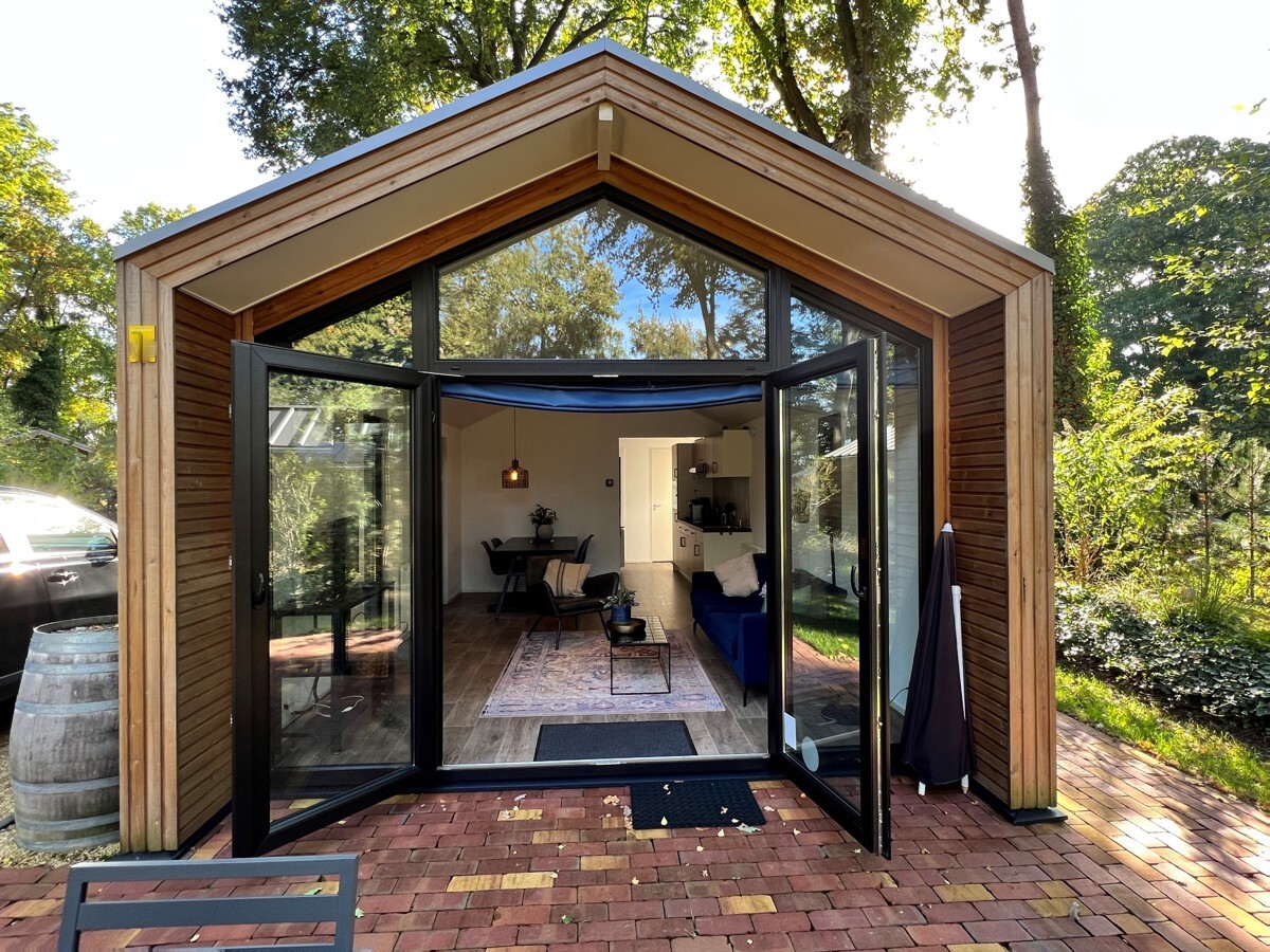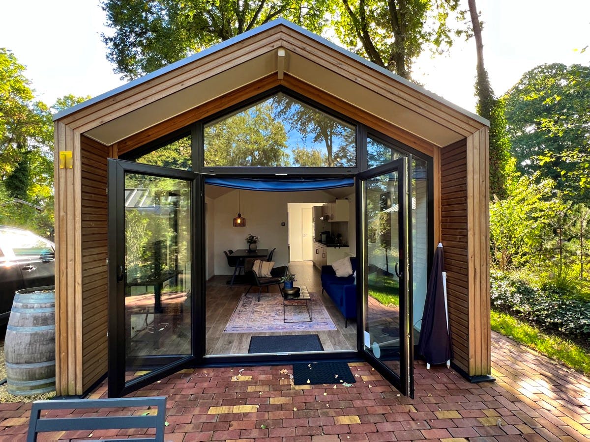 Diese urige Forest Lodge Plus Eco verfügt über ein stimmungsvolles Wohnzimmer, dessen Flügeltüren direkt auf die einladende Terrasse führen. Das Haus verfügt über eine separate Küche mit hochwertigen Einbaugeräten. Im elegant gefliesten Badezimmer finden Sie eine Duschkabine, ein Waschbecken und einen Design-Heizkörper. Das WC ist in einem separaten Raum untergebracht. Diese Forest Lodge verfügt über zwei Schlafzimmer, eines davon mit einem großen Einbauschrank.