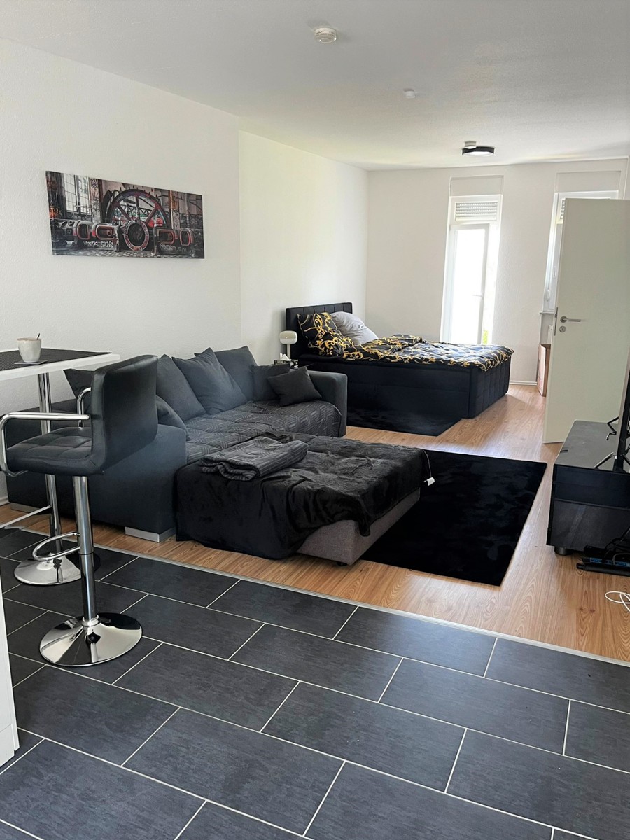 Der großzügige Kochbereich ist mit anthrazitfarbenen Fliesen und einer modernen Einbauküche mit Spülmaschine und Ceranfeld-Herd ausgestattet. Der Wohn-, Schlafraum hat eine tolle Größe, um es sich so richtig gemütlich zu machen. Im modern gefliesten Bad mit Fenster, Badewanne und Dusche haben Sie die Möglichkeit Ihre Waschmaschine aufzustellen. Ein praktischer Abstellraum rundet dieses Angebot ab.