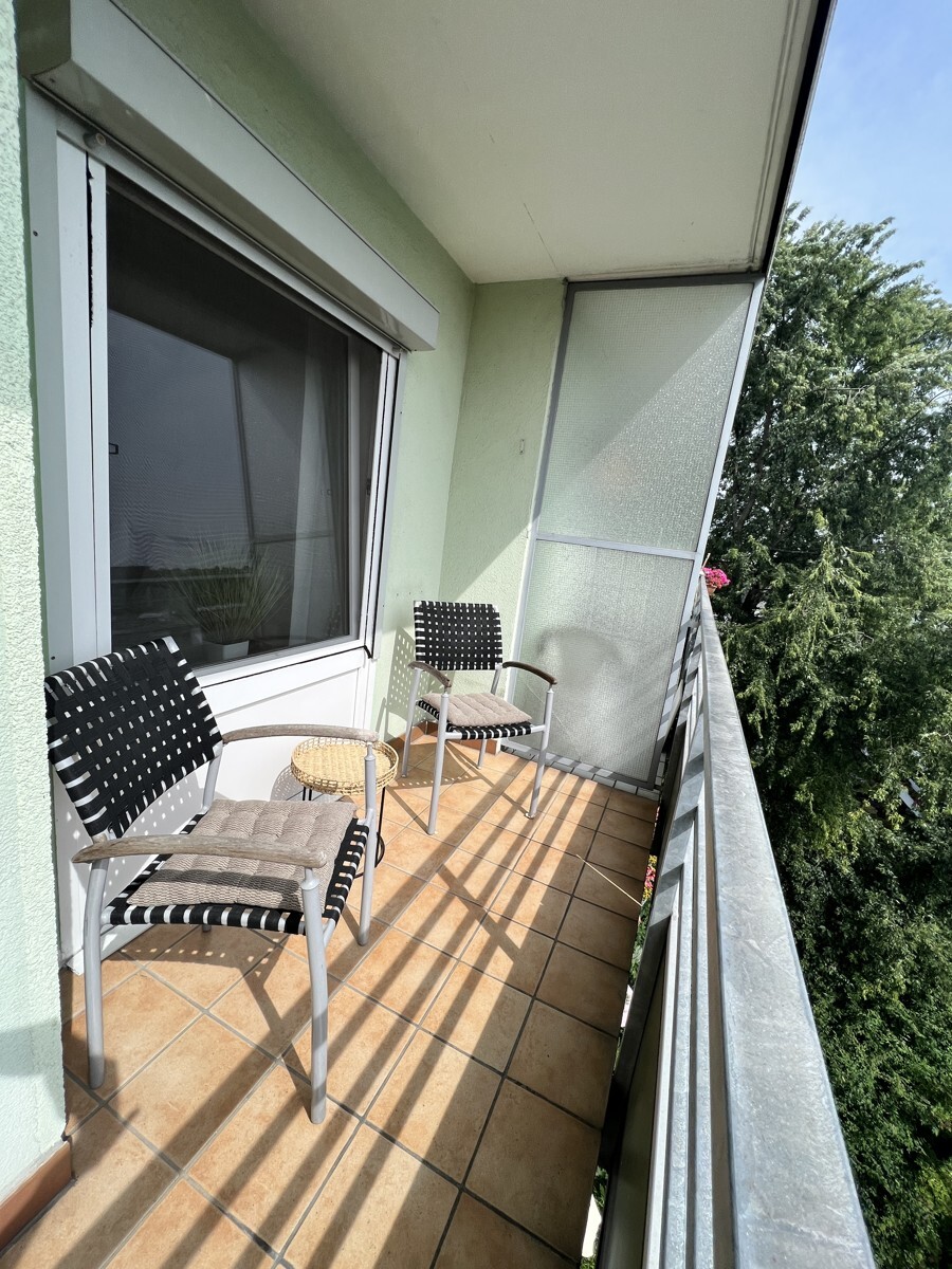 In diese schöne, helle Wohnung gelangen Sie über einen breiten und sehr gepflegten Aufgang zum Haus mit neuem Edelstahlgeländer und automatischer Lichtanlage. Nach der neuen Sicherheits-Eingangstüre folgt Ihr komfortabler Fahrstuhl, der Sie sicher in die 4. Etage bringt. Von hier aus gehen Sie noch eine Treppe ins 5. OG. Die Wohnung mit komplett neu möbliertem Wohn- und Schlafzimmer, einer offenen Küche sowie dem modernen Duschbad zeigt sich sehr sonnig und hell. Das Bad ist neu - mit einer barrierefreien Dusche und Waschmaschine ausgestattet. Vom großen Sonnenbalkon haben Sie einen herrlichen Grünblick.