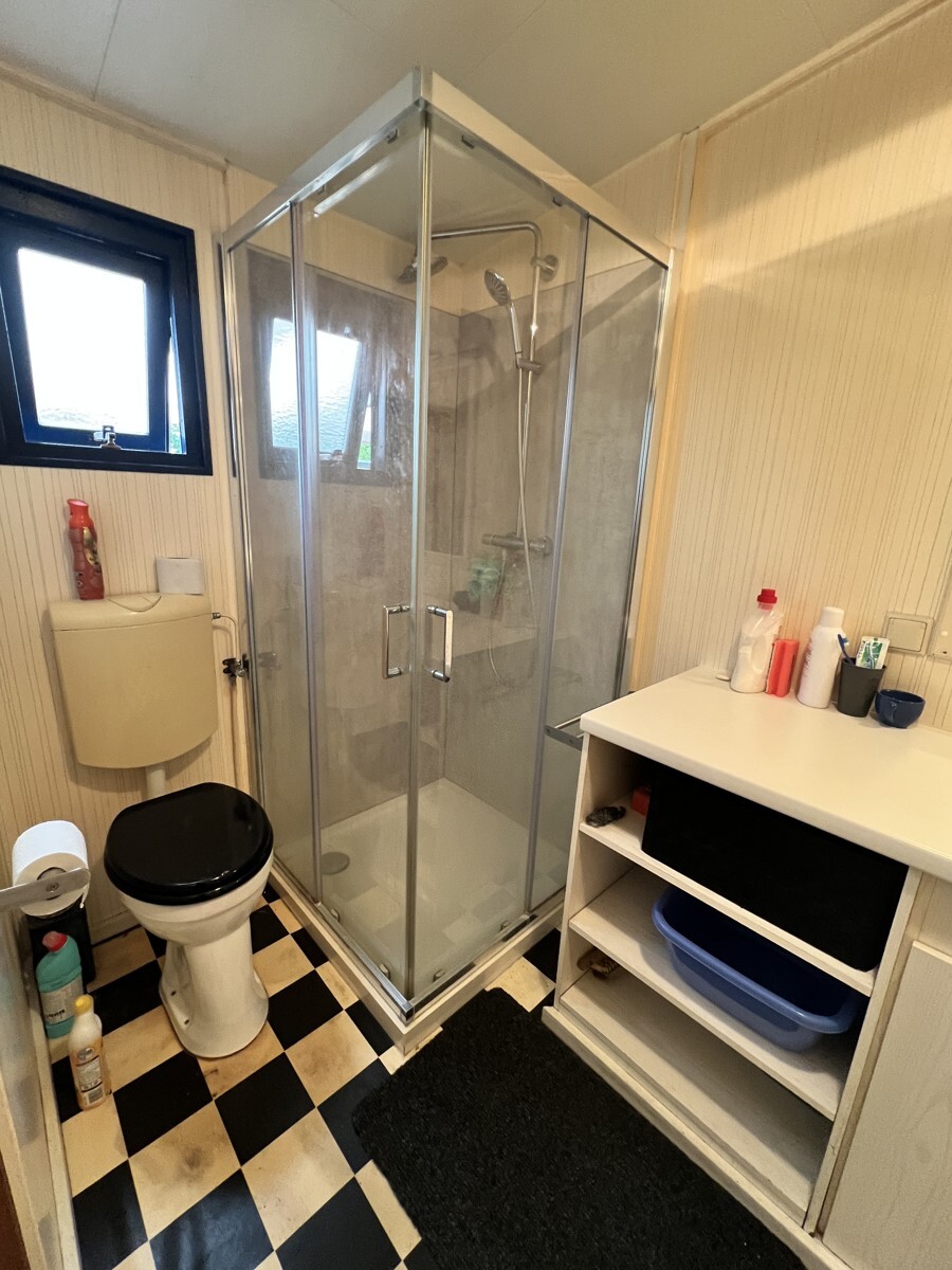 Besser kaufen als mieten! Entspannen Sie sich mit der ganzen Familie in dieser ruhigen Unterkunft. Modern eingerichtetes Chalet mit 2 Schlafräumen und einem Duschbad. Das Wohnzimmer mit offener Küche ist großzügig , die Küche ausgestattet mit verschiedenen Geräten. Ein Duschbad mit Waschmaschine komplettiert das Angebot. Die Terrasse ist komplett überdacht.