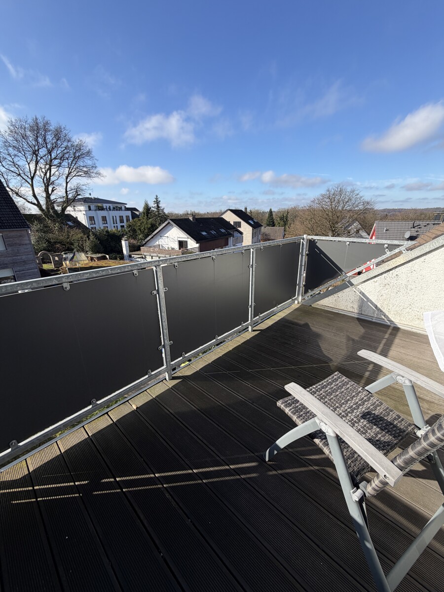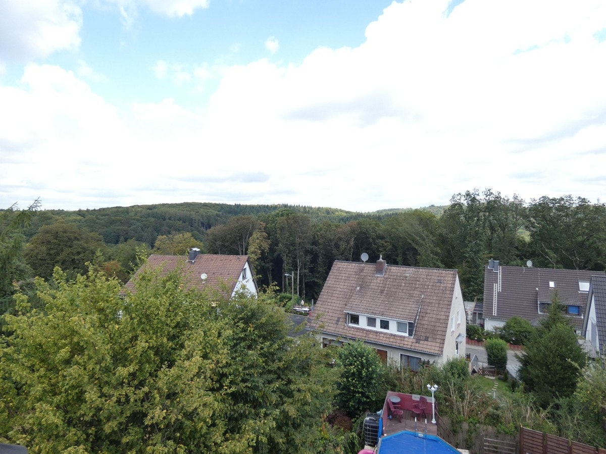 Diese schöne Mietwohnung befindet sich in einer ruhigen Wohngegend von Wuppertal-Cronenberg. Im Dachgeschoss eines 6-Parteienhaus liegt diese moderne Mietwohnung, die mit einem tollen Ausblick und einer angenehmen Raumaufteilung besticht. Vom Flur gelangen Sie in alle weiteren Räume dieser Wohnung. Neben einem Schlafzimmer mit angenehmer Größe und einem kleinen Büro sticht vor allem der große Wohn-/Essbereich mit offener Küche und angrenzendem Balkon hervor. Die voll ausgestattete Küche ist im Mietpreis bereits enthalten. Das ebenso moderne Fensterbad mit Wanne und Dusche lädt zu entspannenden Stunden ein. Der Garten hinter dem Haus kann von allen Mietern des Hauses mitbenutzt werden.