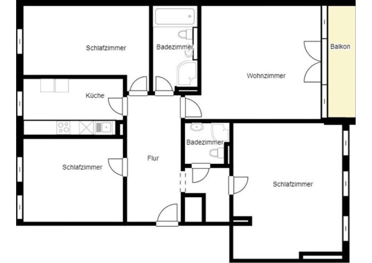 - 4 Zimmer, Küche mit Einbauküche, Diele, 2 Bäder, Balkon