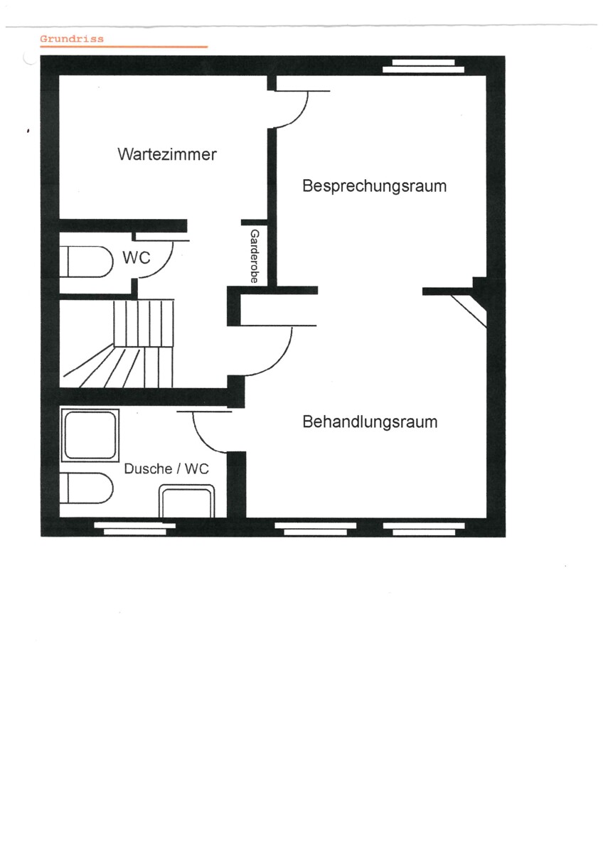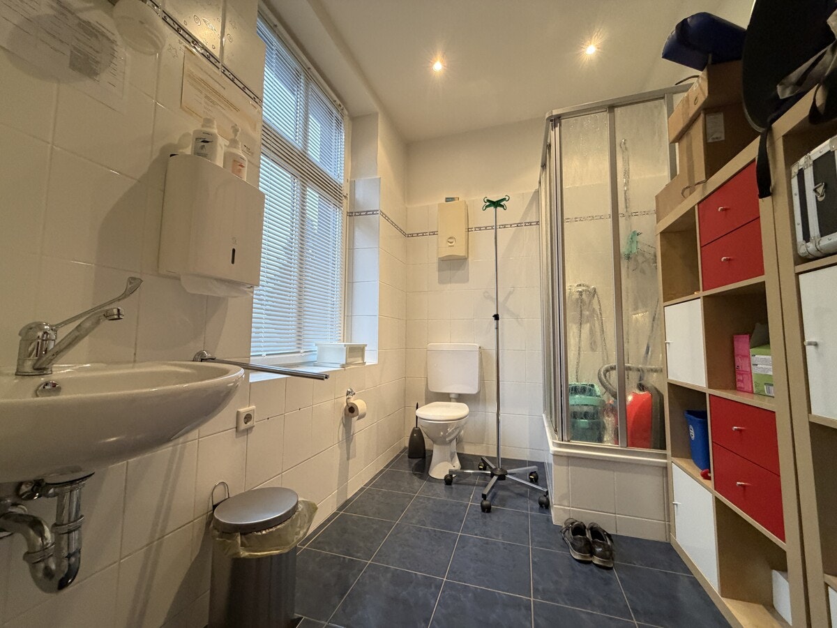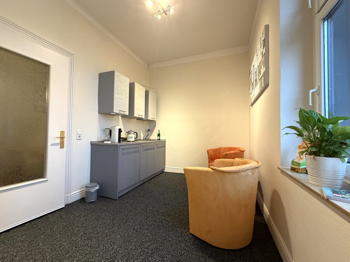 Die Gewerbeeinheit befindet sich in der 1. Etage eines gepflegten Mehrfamilienhauses, Baujahr ca. 1900, und wird seit mehreren Jahren als Heilpraktiker-Praxis genutzt. Sie betreten die Fläche über die Küche, von hier aus gelangen Sie in die beiden anderen Räume und das Bad. Der jetzige Behandlungsraum könnte jedoch auch vom Flur aus betreten werden - siehe Grundriss. Alle Zimmer sind mit einem Fenster ausgestattet, so dass genug Licht vorhanden ist. Die Fläche verfügt über ein Duschbad sowie ein separates Kunden-WC. Diese Räumlichkeiten eignen sich z.B. als Versicherungsbüro, Steuerberater, Rechtsanwälte, Pflegedienste, Heilpraktiker, o.ä.. Mehrere Parkflächen stehen gegen Gebühr zur Verfügung.