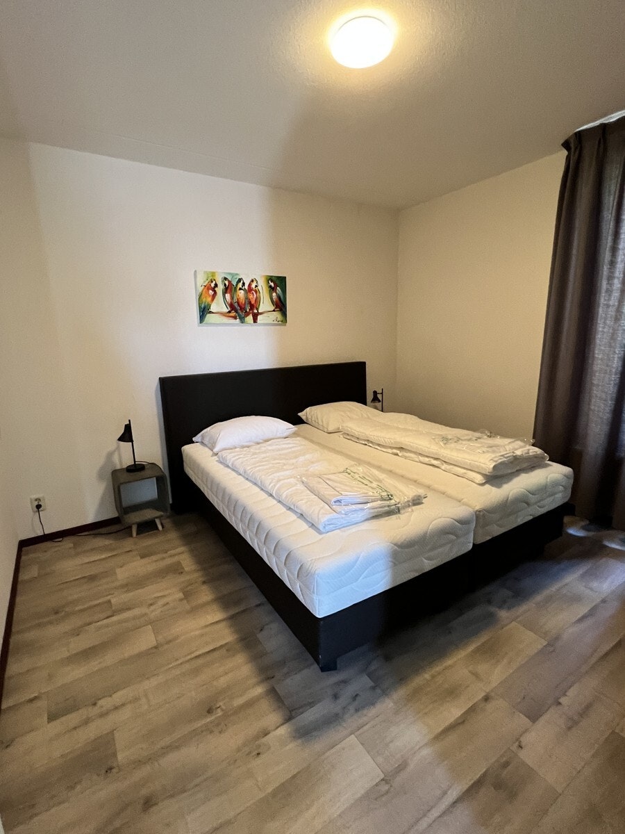 - Zwei Schlafzimmer. Ein Schlafzimmer mit Doppelbett und ein Schlafzimmer mit zwei Einzelbetten.