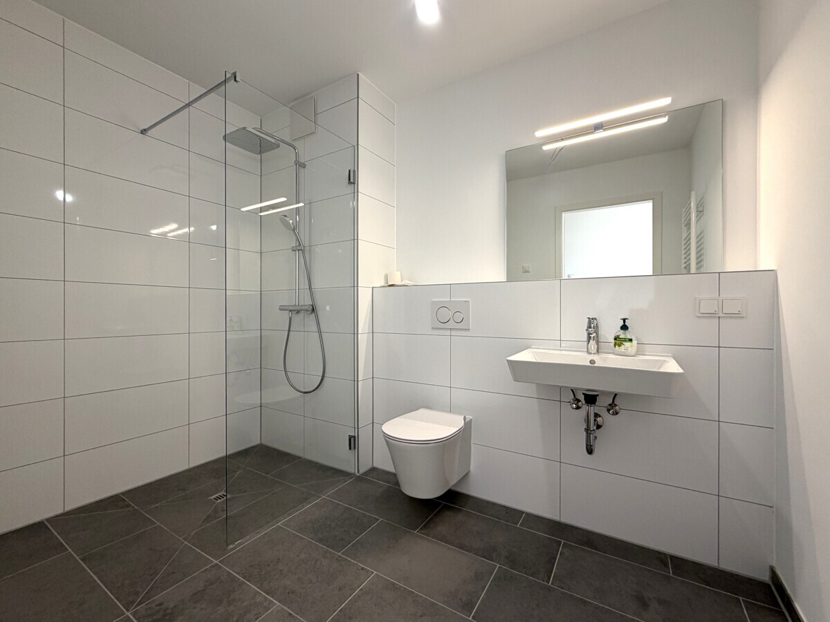 Ein Bad en Suite verfügt über eine bodengleiche Walk-In-Dusche, das zweite Bad über eine Badewanne.