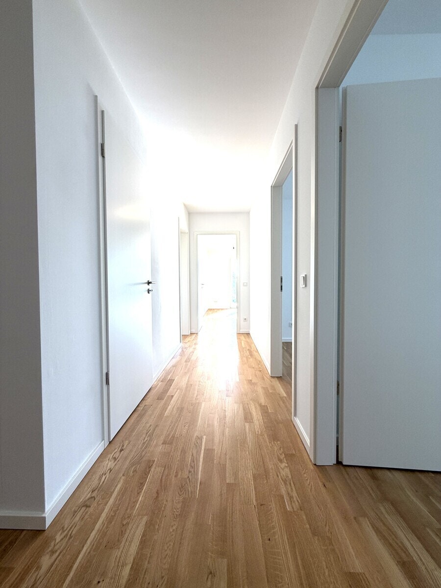 Es erwartet Sie hochwertiges Echtholzparkett mit individuell regulierbarer Fußbodenheizung in allen Räumen.