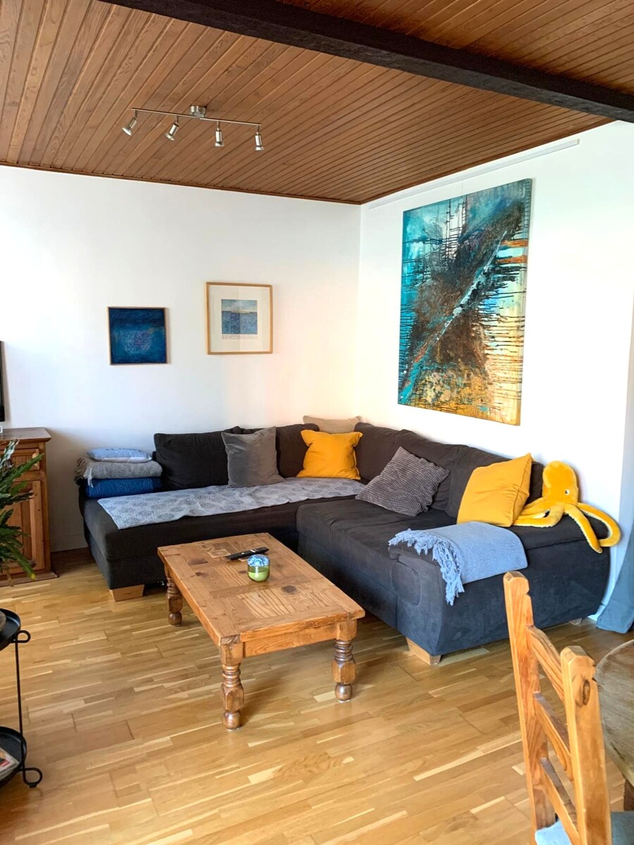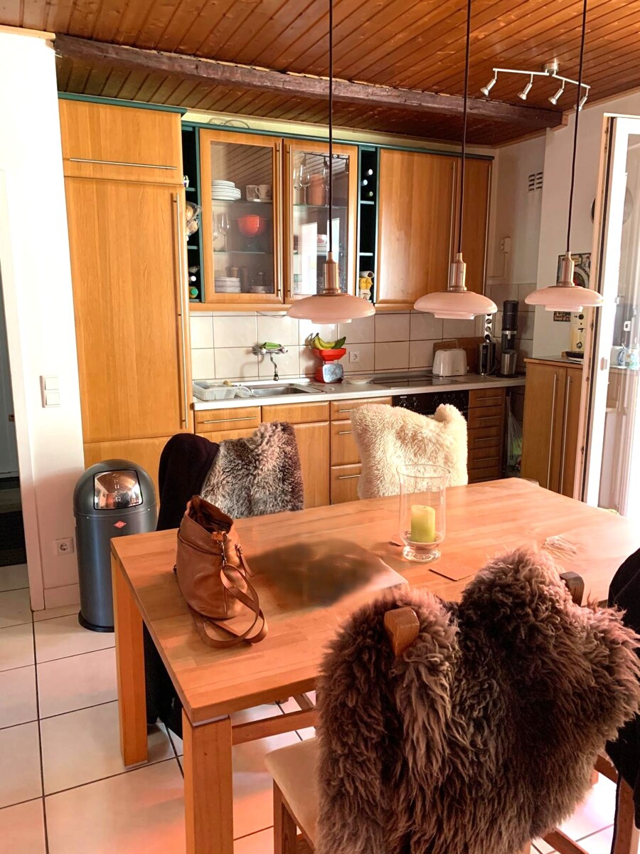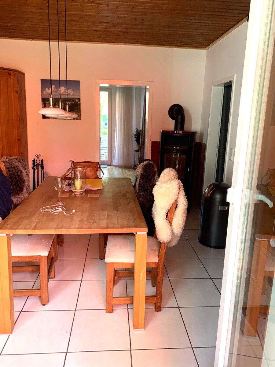 Das Herzstück der Wohnung ist das lichtdurchflutete Wohnzimmer und die Wohnküche, die mit einem stilvollen Kaminofen besticht. Dieser sorgt nicht nur für behagliche Wärme an kalten Winterabenden, sondern verleiht der gesamten Wohnung eine besondere, heimelige Atmosphäre.