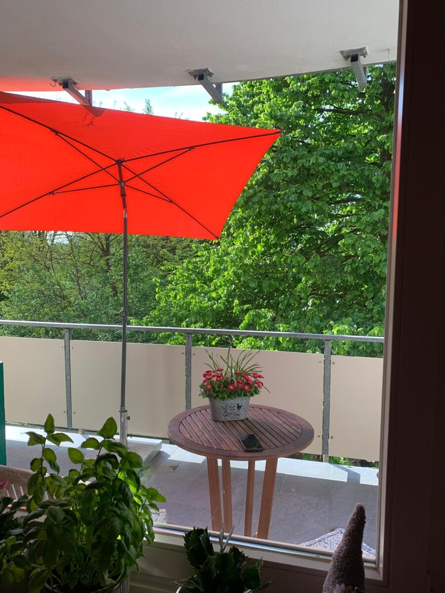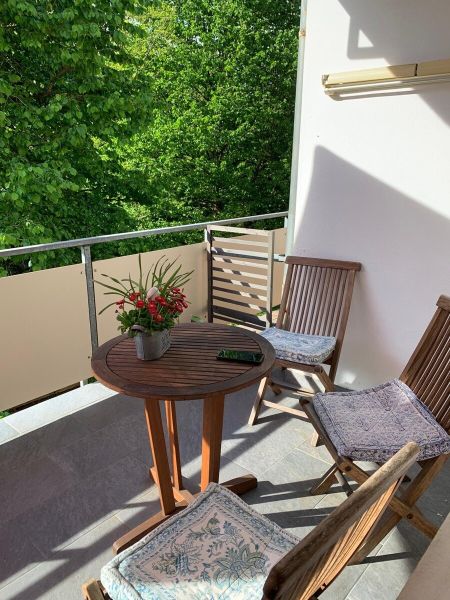 Ein weiteres Highlight ist die seltene Ausstattung mit zwei Balkonen, die es Ihnen ermöglichen, die Sonne zu verschiedenen Tageszeiten zu genießen oder ganz flexibel eine „Frühstücks-“ und eine „Abend-Oase“ zu gestalten. Der große Balkon mit Südausrichtung bietet einen herrlichen Grünblick und viel Ruhe. Neben dem einladenden Wohnbereich bietet die Wohnung ein gemütliches Schlafzimmer.