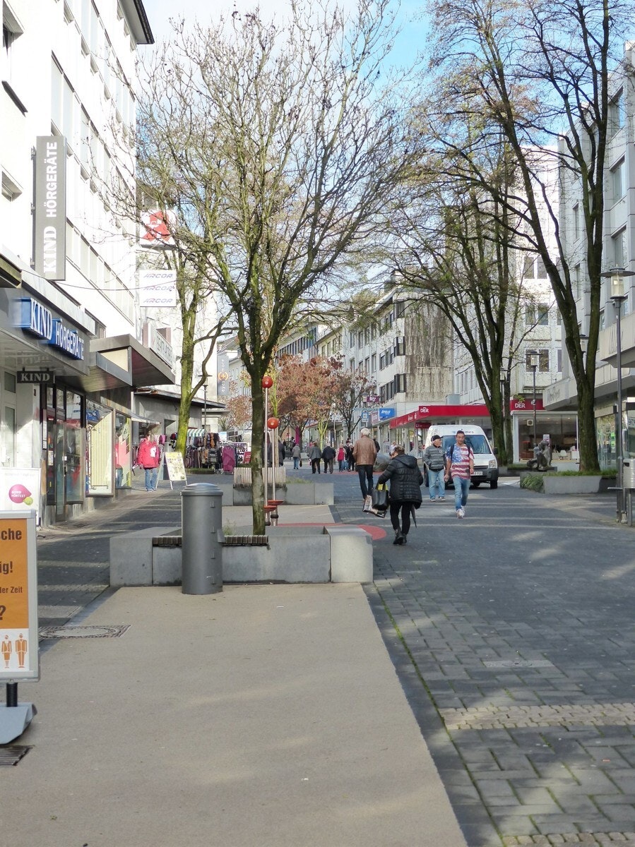 Diese Gewerbefläche mit 151 m² ist im Erdgeschoss eines Wohn- und Geschäftshauses in der Fußgängerzone von Solingen untergebracht.