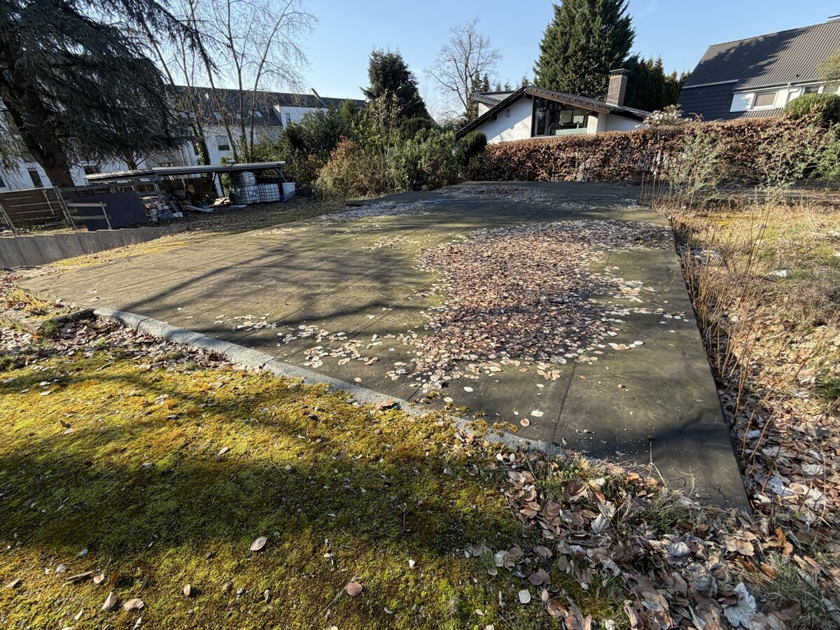 Die Infrastruktur auf dem Grundstück ist bereits hervorragend vorbereitet: Die Zufahrten sind geschottert, ein moderner Carport und Garagen stehen bereit. Ein besonderer Kostenvorteil ergibt sich durch den sanierten Teilkeller des Bestandsgebäudes, der inklusive aller Medienanschlüsse erhalten wurde, jedoch bei Bedarf auch abgerissen werden kann. Die Lage kombiniert urbane Nähe zur Fußgängerzone mit einer exzellenten Fernverkehrsanbindung an die Rheinschiene.